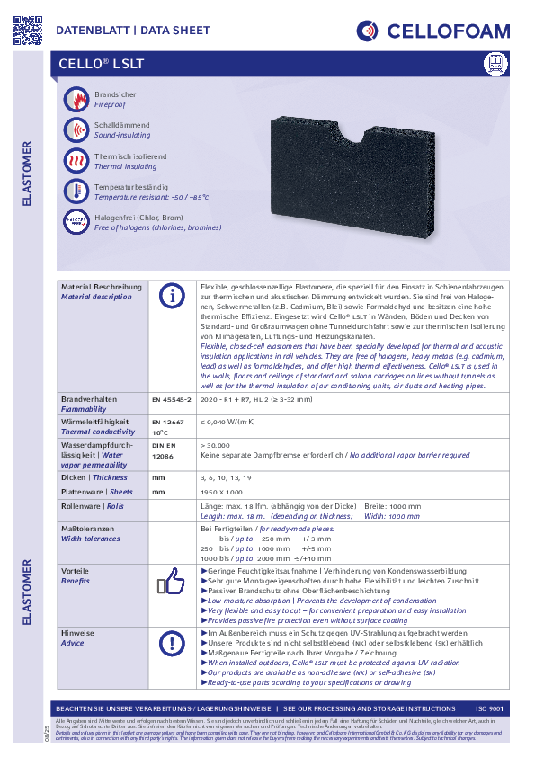 Flexible, closed-cell elastomers that have been specially developed for thermal and acoustic insulation applications in rail vehicles. They are free of halogens (e.g. chlorines, bromines), heavy metals (e.g. cadmium, lead) as well as formaldehydes, and offer high thermal effectiveness.Product details