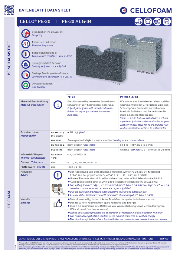 Closed-cell, cross-linked PE foam. Cello® PE-20 scores with a low weight and minimal water absorption.